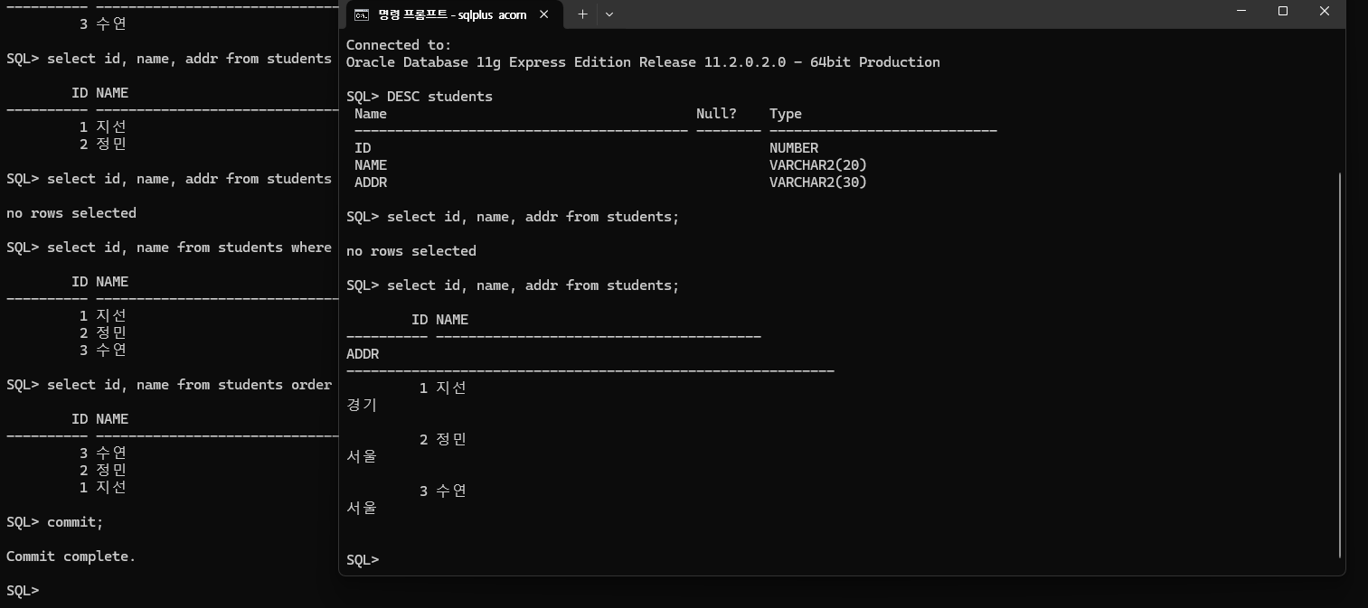 임시로 반영된 상태의 창을 우선 저장하고 싶으면 COMMIT 명령어를 사용해서 현재까지의 표를 반영한다.