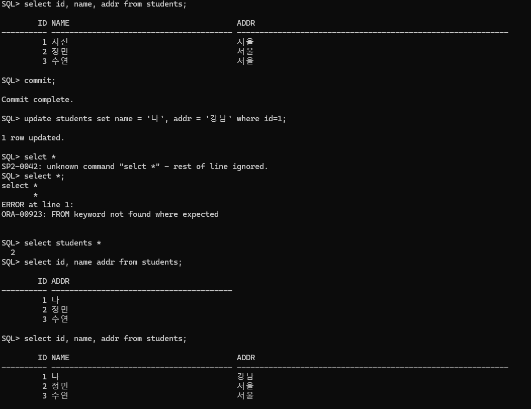 commit 없이 누른 영역들은 모두 임시 반영된 상태의 영역들이어서 rollback으로 언제든지 지울 수 있다.