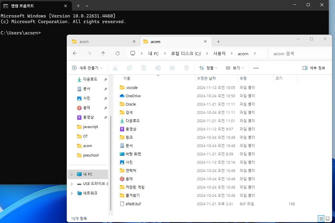 맨처음 나타나는 경로는 내 PC >사용자 >acorn의 폴더에 있는 녀석들이고,