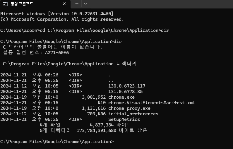 이 경로에서 chorme.exe를 입력하면 직접 실행할 수도 있다. (짱신기)