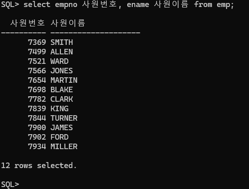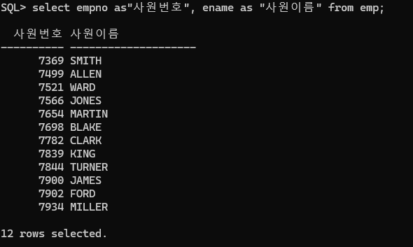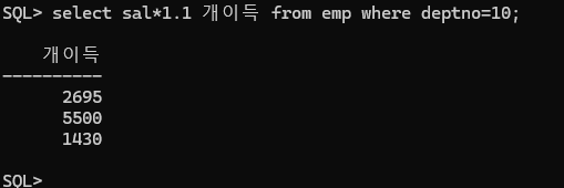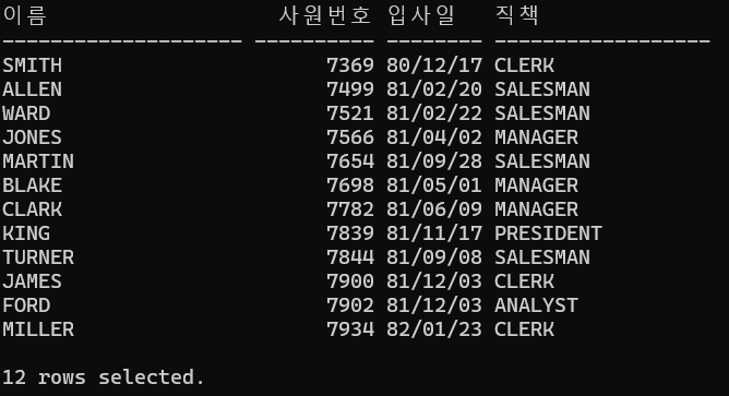 select 로 선택한 값을 출력(조회)할 때 그 위에 출력시에만 형식을 변환시켜주는 방법은 다음과 같다.