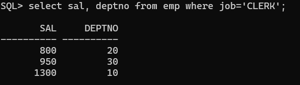 또는 DEPTNO가 20번인 직원들의 ENAME, JOB, SAL을 조회하세요.