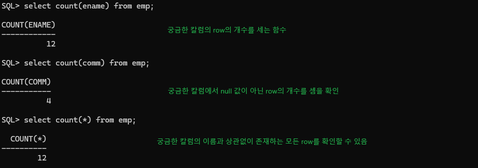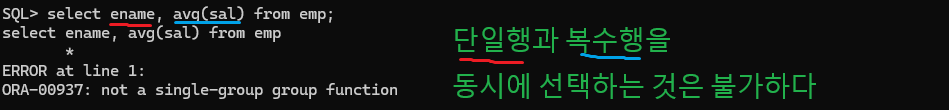 복수행 함수는 여러 개의 row로부터 1개의 row 값만 나타나게 추출하는 함수이다.