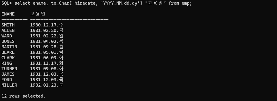 <9:30 1교시> 지난 주에 했던 함수 내용 복습 : 문자열 함수, 숫자함수, 날짜 함수, 변환 함수