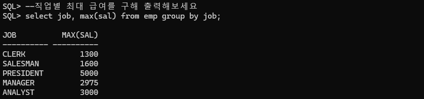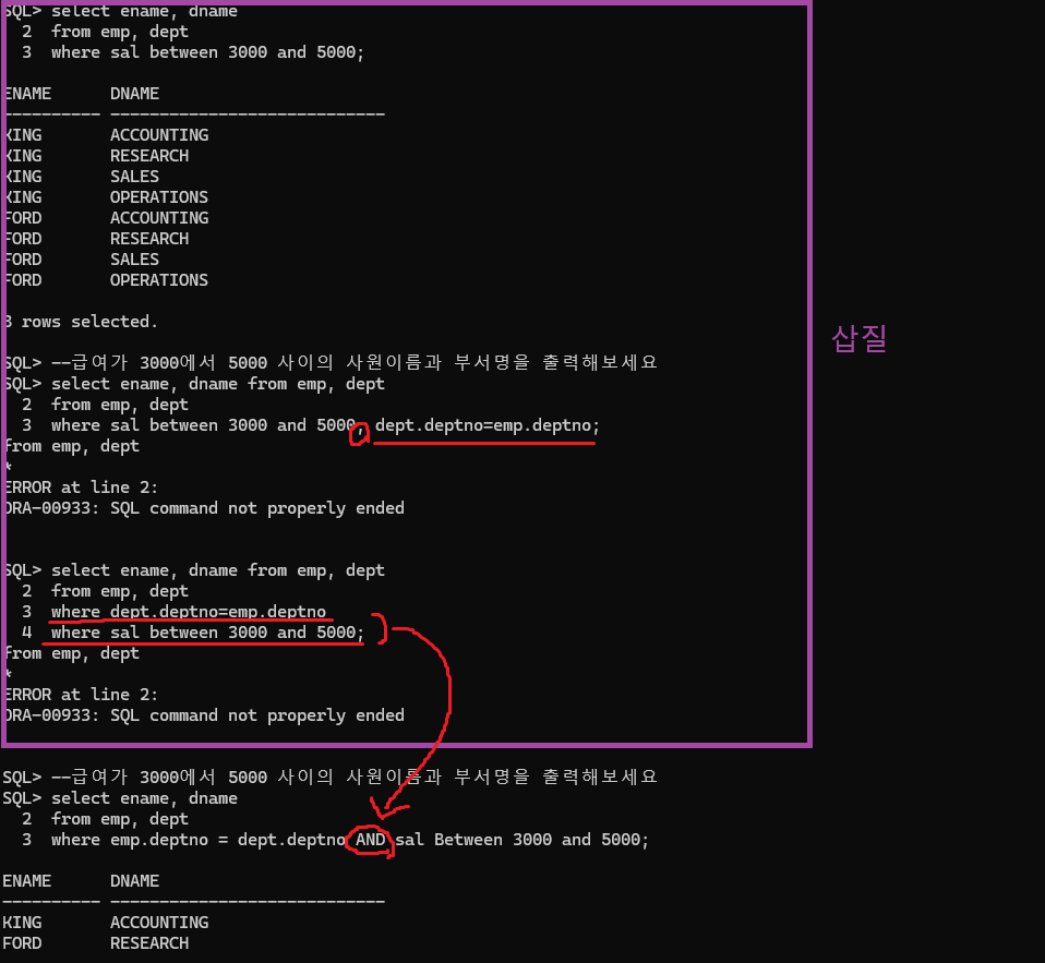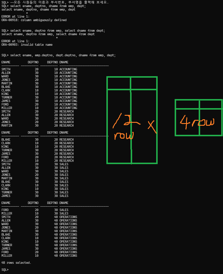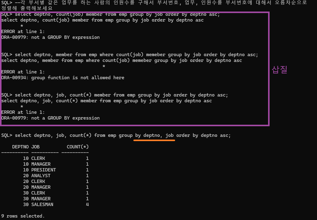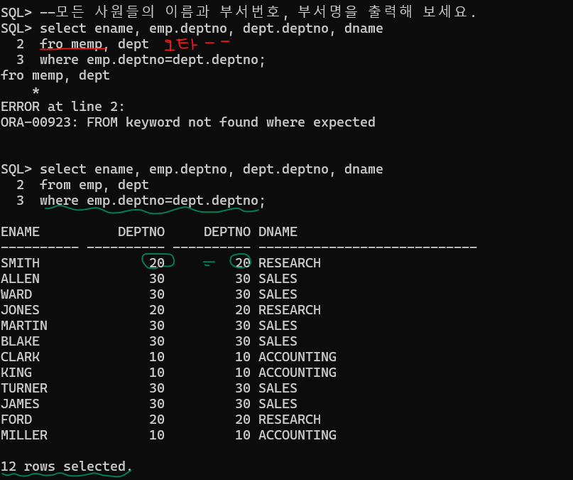 아까 배고프고 바보짓 탈출하고 성공했다는 기쁨에 겨워서dname이랑 job은 굳이 select 할 필요도 없단걸 완탕면 먹으면서 깨달음.
