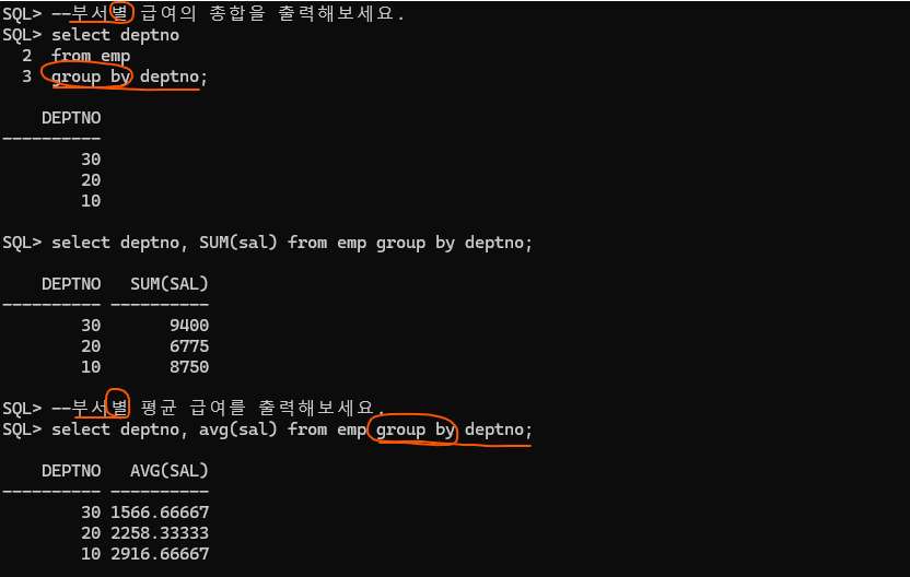 <10:30 2교시> 단일행 함수 중 일반 함수, 복수행 함수 GROUP BY의 활용