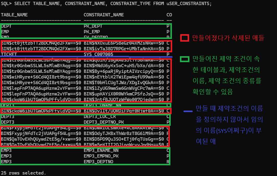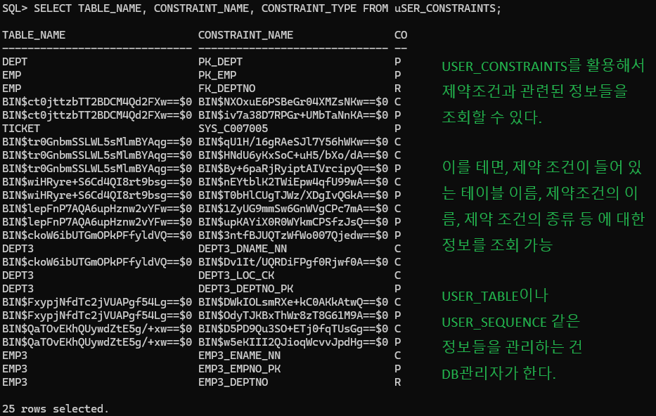 - 테이블에 제약 조건을 비활성화 하는 것 : 개발 초기에 부여해둔 제약조건을 비활성화 시킴